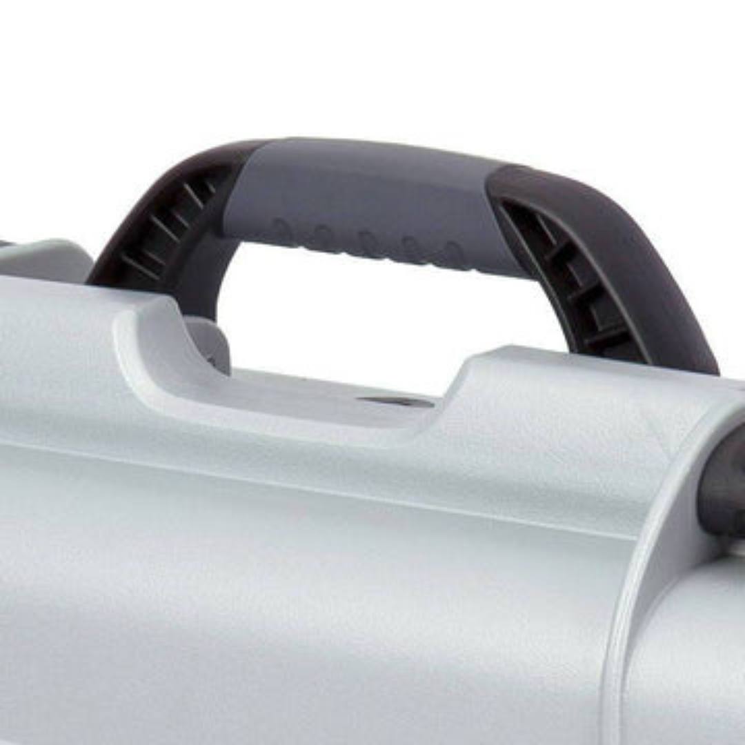 The frame of the handle is created using the same NK-7 lightweight and indestructible resin as the rest of the hard case. The handle is coated in an impact-resistant soft grip for ultimate comfort and maximum durability. Some larger cases also come equipped with polyurethane wheels (similar to what you find on rollerblades), which, along with their stainless steel bearings, ensure a quiet, effortless trip over a multitude of terrains.