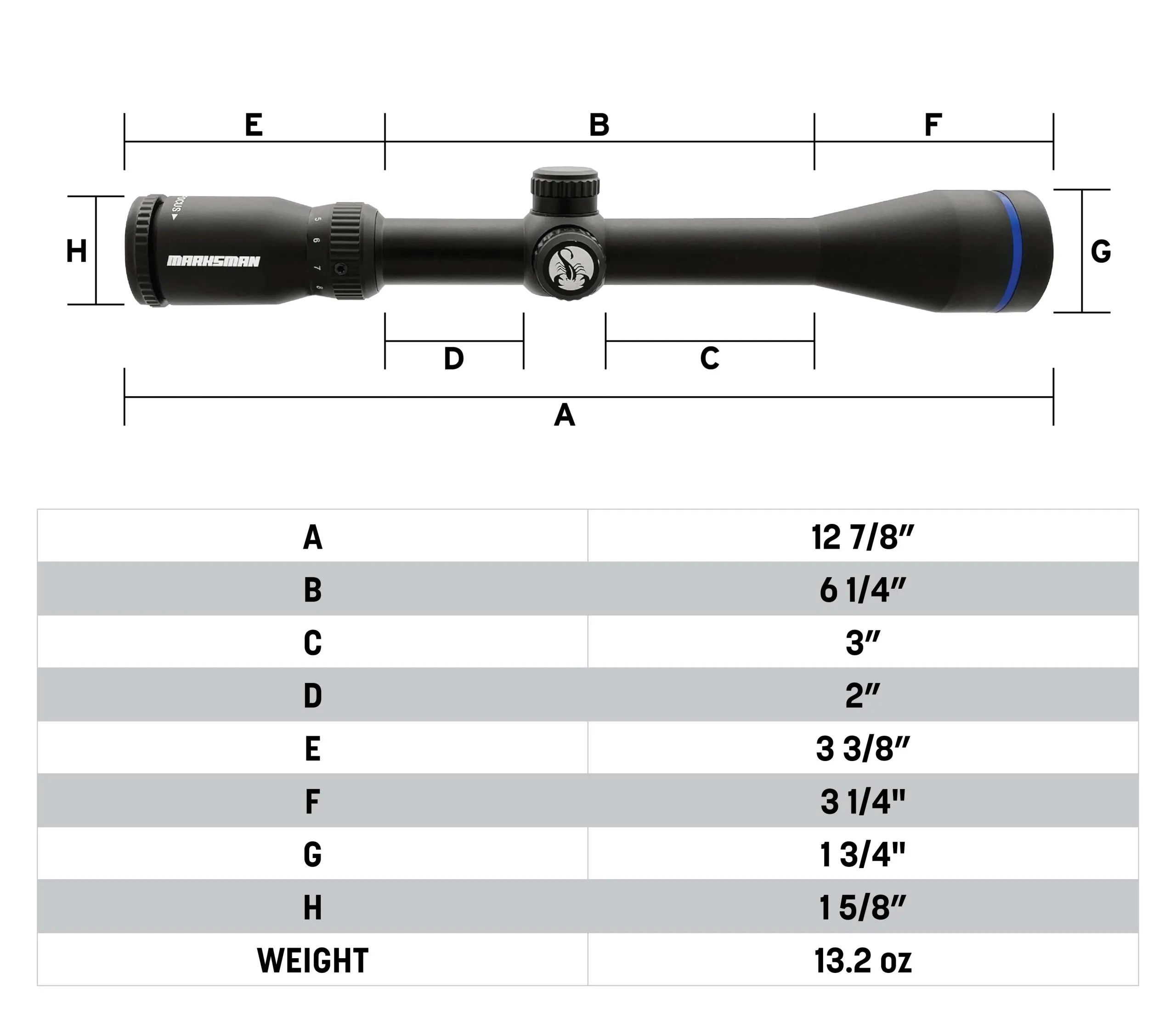 Rugged, dependable, and accurate—the Scorpion Optics Marksman 135-BMK 4–12×40 delivers clear glass, capped adjustments, and a durable aircraft-grade aluminum build. Designed for precision and value on .243 or lower calibers.